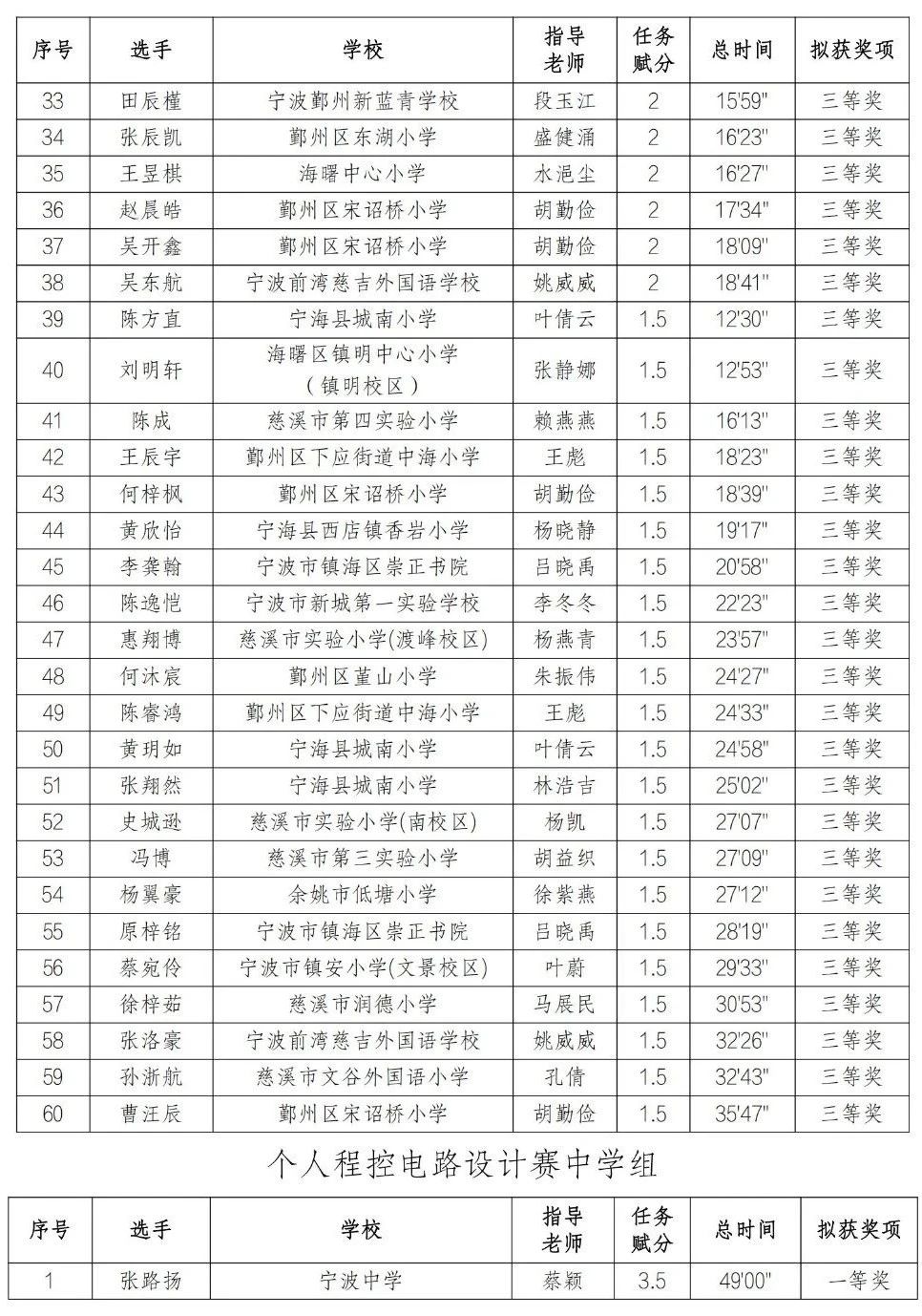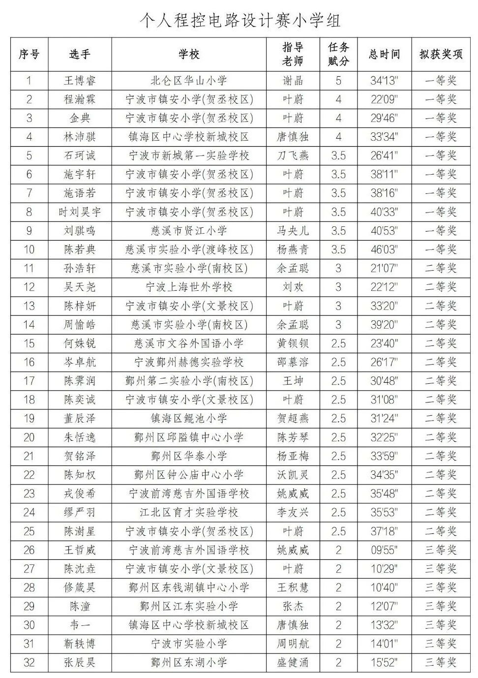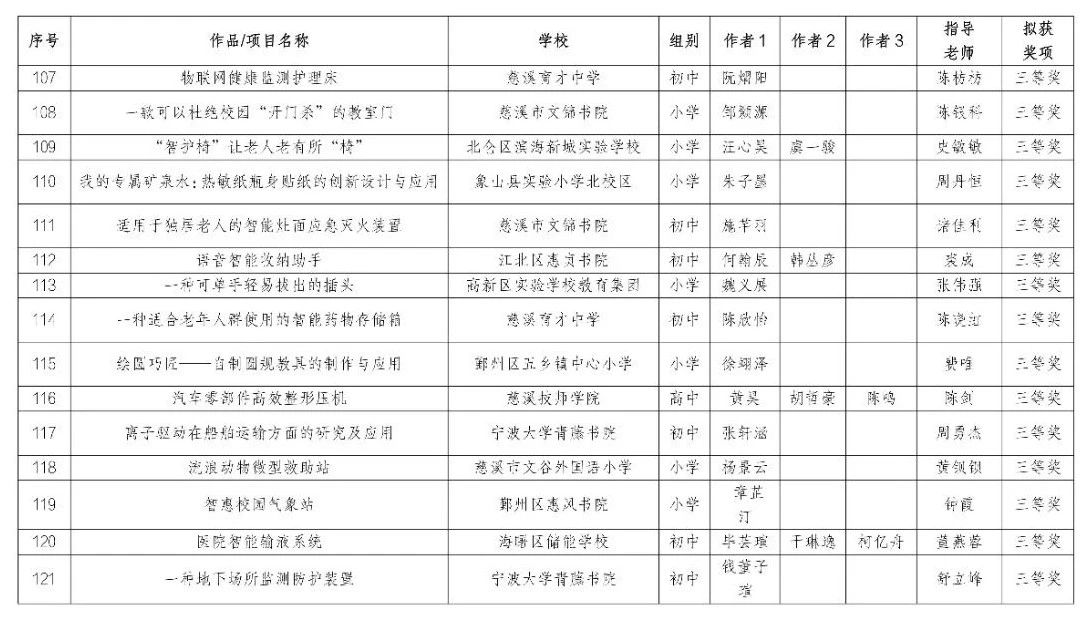 2024年宁波市中小学信息技术创作大赛工程设计创意赛获奖名单公示