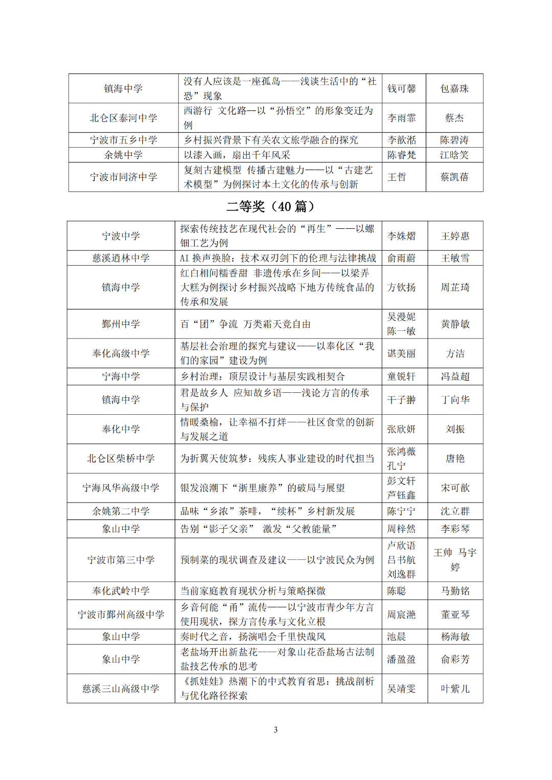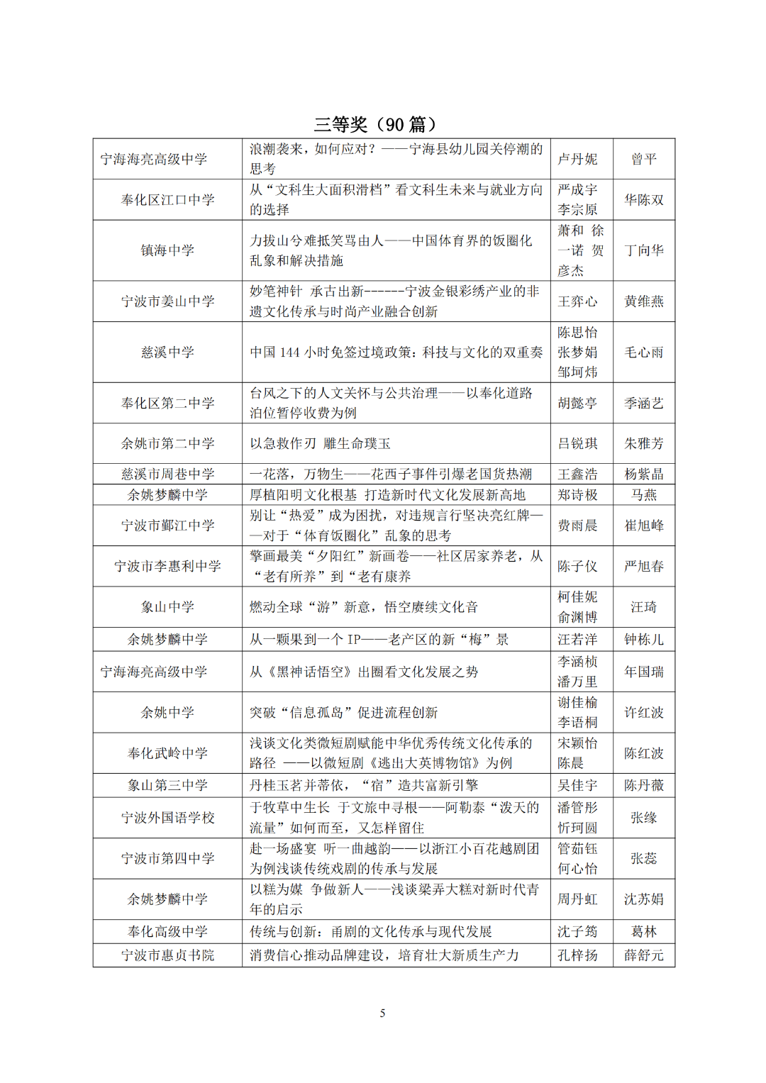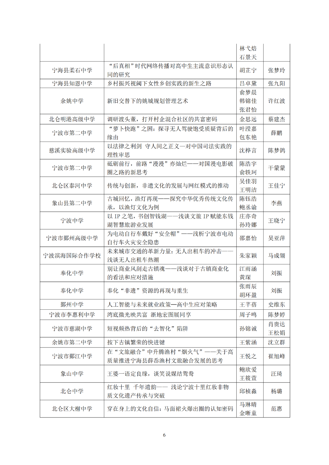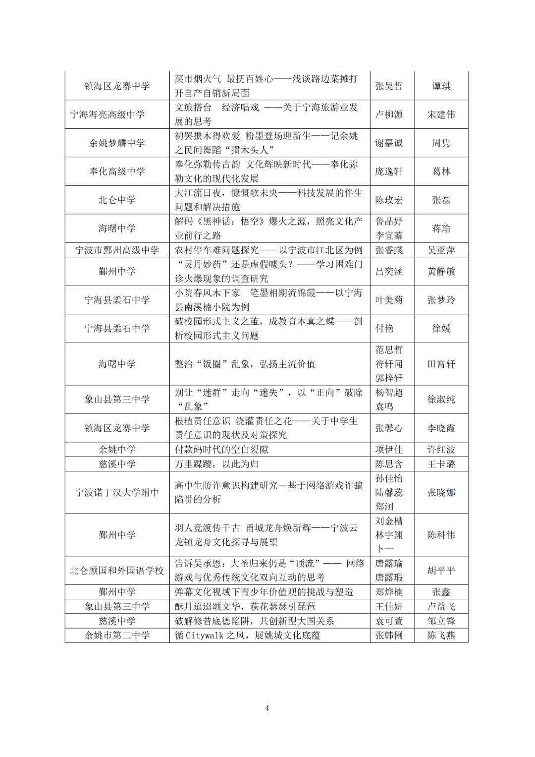 关于公布2024年宁波市普高学生政治小论文评审结果的通知: