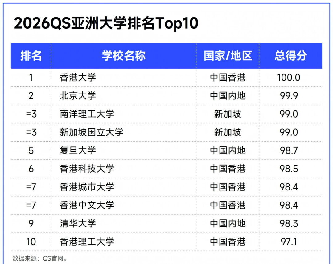 2026QS亚洲大学排名TOP10