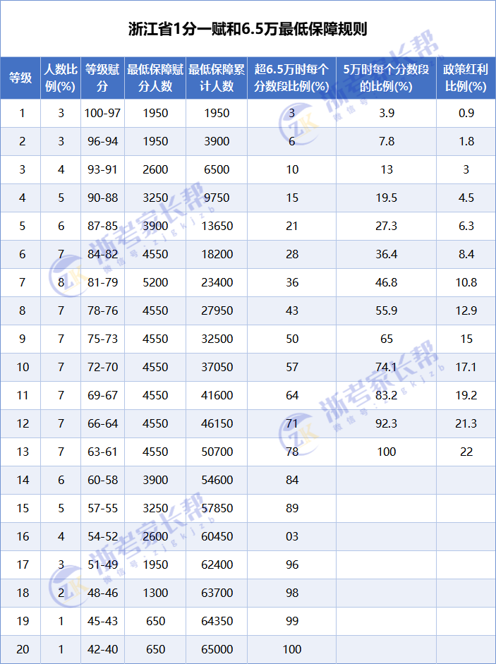 各选考科目的赋分保障基数确定为6.5万人。当某选考科目某次考试赋分人数少于保障数量时,以6.5万人为基数从高到低进行等级赋分。各选考科目的保障基数实施一个统一的标准,保持各科目赋分规则一致、确保公平。