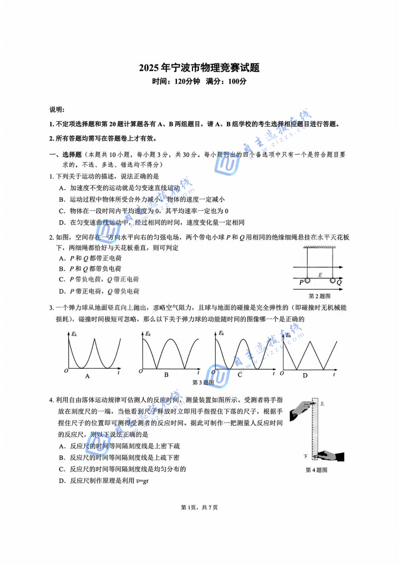 2025年12月宁波高中7大学科竞赛试题及答案汇总2025-12-09
