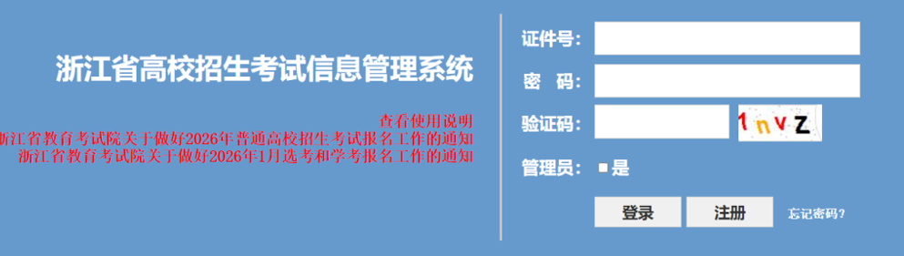 点击上图红色框内文字“浙江省高校招生考试信息管理系统”,或者直接输入网址https://pgzy.zjzs.net:4431/login.htm进入账号登录页面: