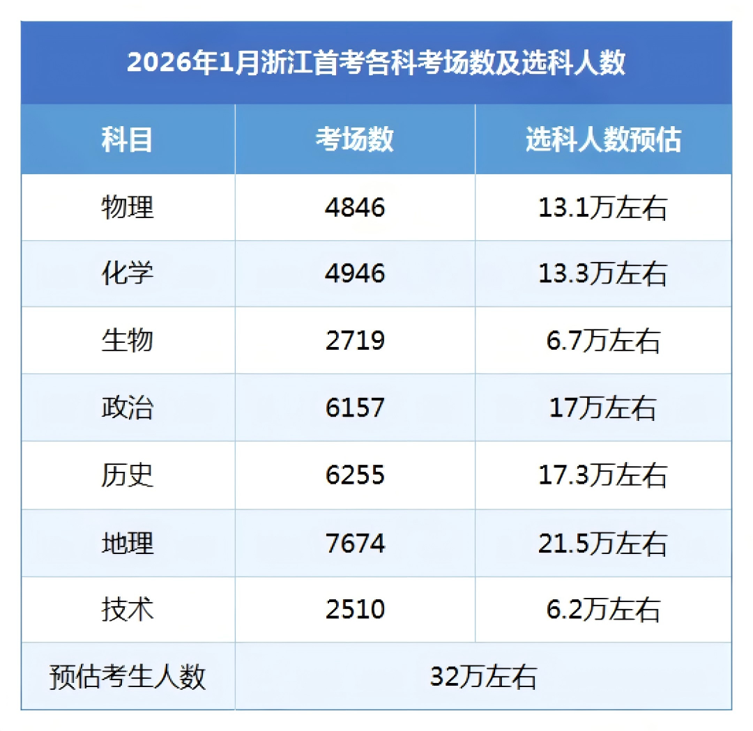 2026年浙江省首考选科数据出炉