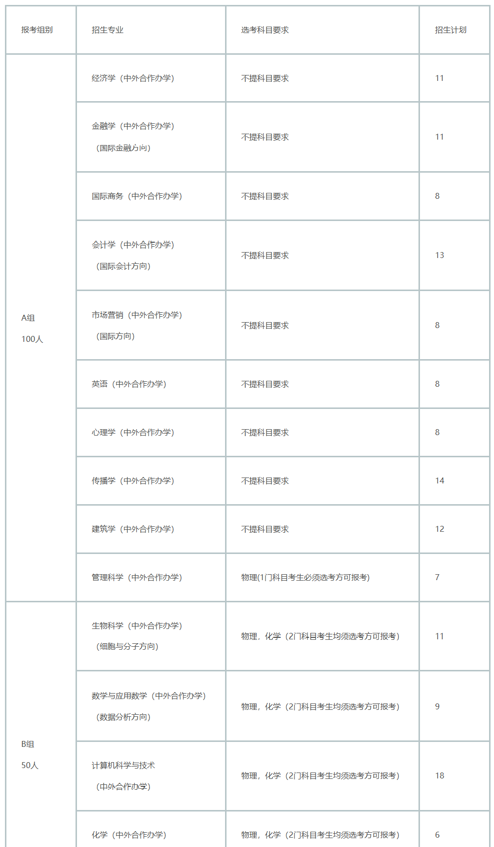 第十三条 学校面向浙江省计划招收150名学生。招生专业分为A组和B组两个类别,考生只能选报其中一个组别,不能兼报。