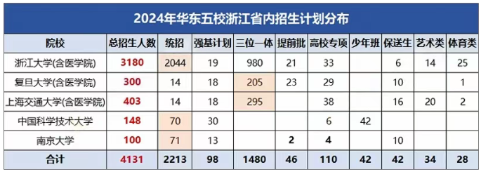从2023年至2025年招生数据来看,三位一体已成为复旦大学在浙江招生的绝对主渠道。以2023年为例,复旦在浙共录取251人,其中三位一体205人,占比超80%;普通批仅14人,强基计划12人。