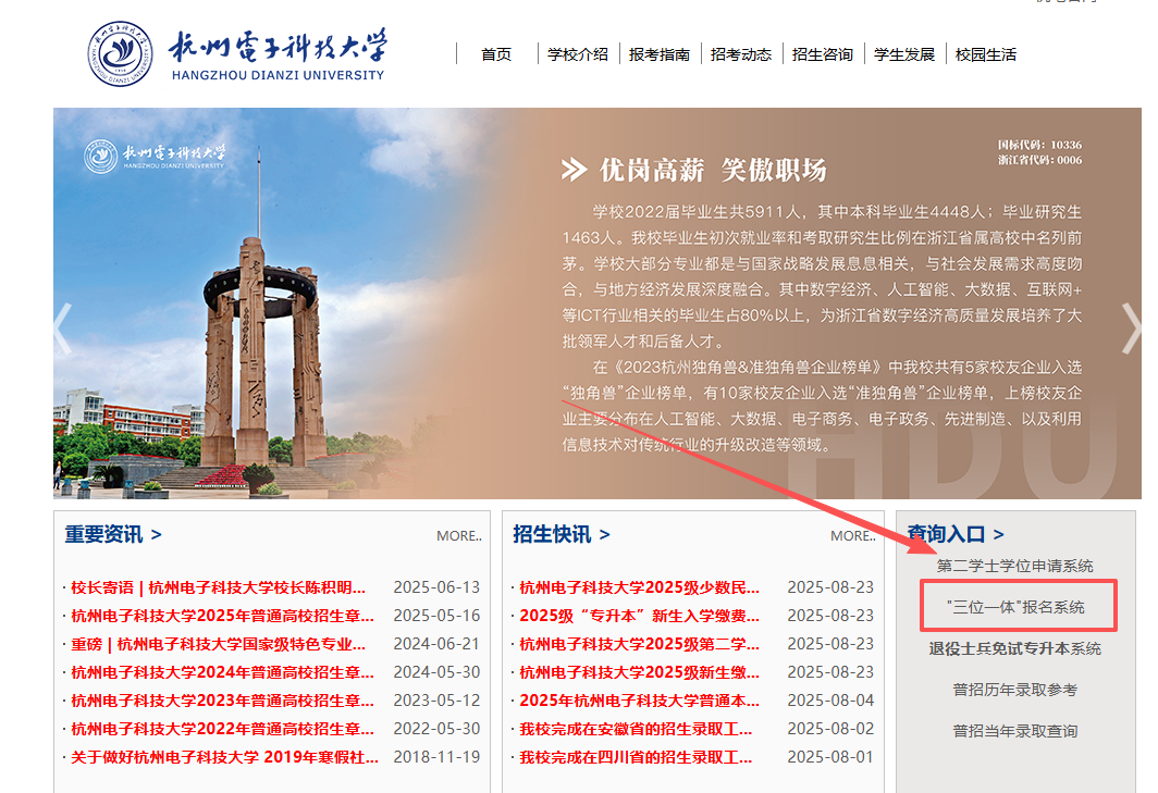 杭州电子科技大学浙江省“三位一体”综合评价报名入口在哪里?