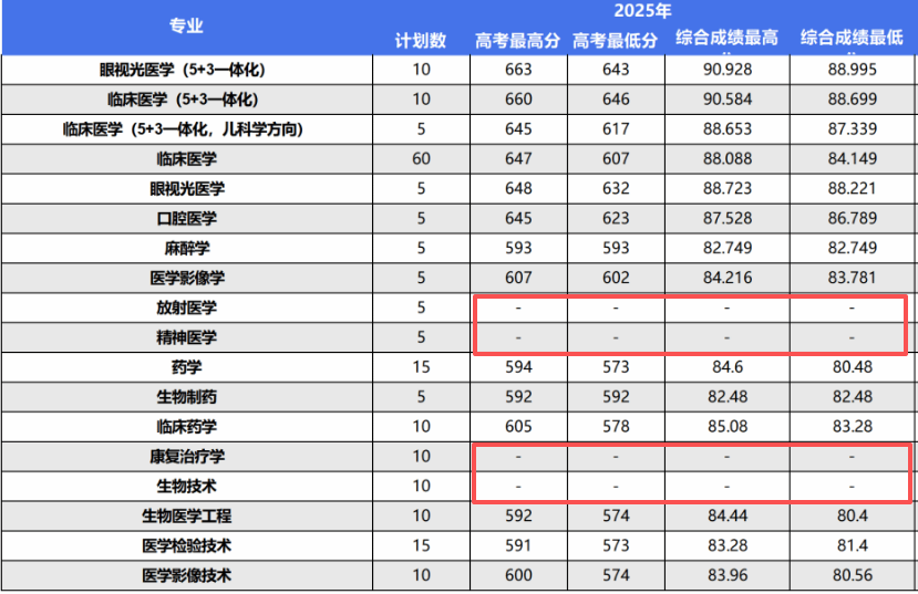 温医大三一要求,填报临床医学类志愿的考生高考成绩必须不低于特控线;填报医学相关类志愿的考生高考成绩必须不低于特控线下20分。由于相对较高的底线成绩要求,因此参考温医大招生网公示,温医大每个组内相对冷门的专业,都没有招满。