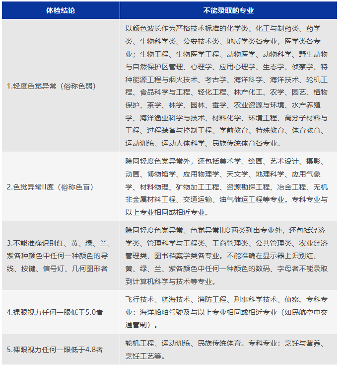 体检结论与志愿选报