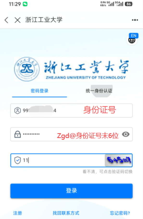 登录界面选择“密码登录”,在“用户编号/学工号”录入框输入身份证号、密码:Zgd@身份证号后六位(密码第一个字母大写,若身份证号后六位含字母,字母需大写,例如“Zgd@38541X”)和验证码(图形界面算式的计算结果)点击【登录】(如图1所示),在自助缴费界面点击对应学费的【查看收费项】(如图2所示),查看并选中收费项,再点击右下方【去支付】(如图3所示),根据支付流程完成后续付款(建议选择政务支付,支付完成即可获得发票)。