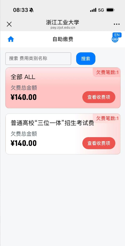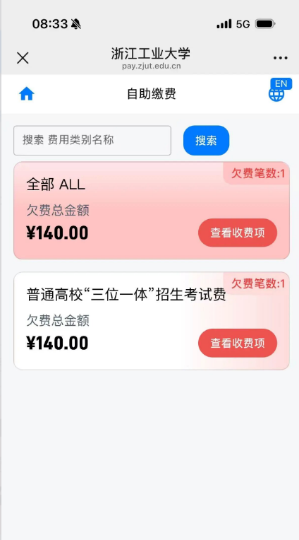 微信扫描下方二维码关注浙江工业大学计财处微信公众号。点击财·办理→点击缴费平台。