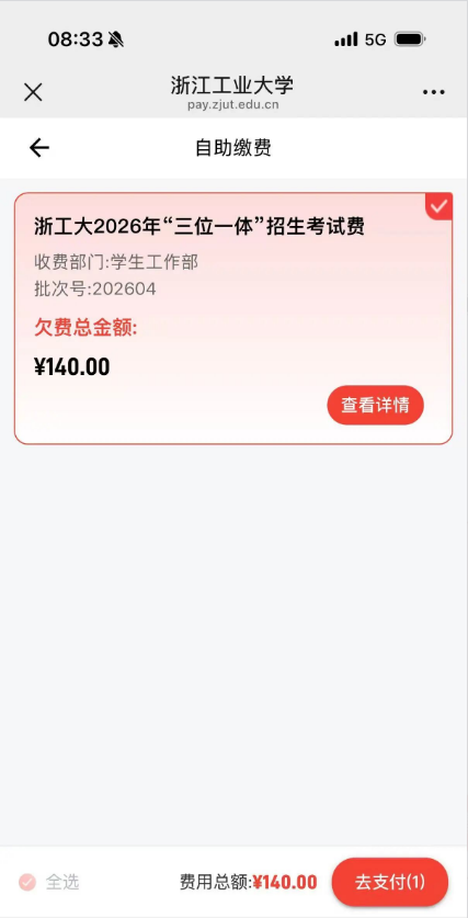 浙江工业大学2026年三位一体综合评价初审结果及缴费须知