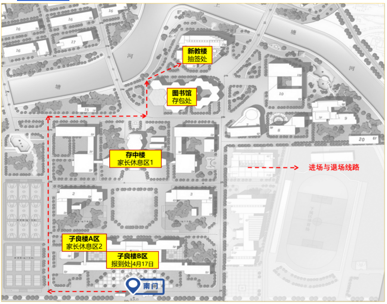 1. 综合测试时间:4月18日(分上午、下午进行),综合素质测试形式为面试,测试抽签地点设在新教楼(请见文末校园示意图),请按照测试通知书上注明的时间准时参加测试。未按规定时间参加抽签的考生,视为自动放弃测试资格。