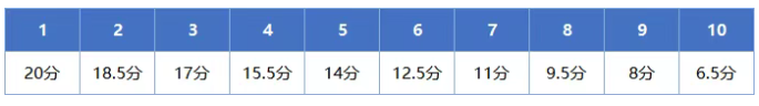 (2)评分规则:教授面试10位考生为一个打分周期,每位教授分别给这10位考生排名,按照公差1.5分的等差数列给10位考生赋分,每位考生最高获得20分,最低获得6.5分。理论上一个考生可获得的最高分为20*5=100分,最低分为 32.5分,差距最大可达67.5分,折算到高考约为59.6分。
