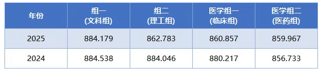 2025年复旦大学在浙江三位一体招生中,综合成绩最高的是专业组一(文史)884.179分,最低的为医学专业组二859.967分。