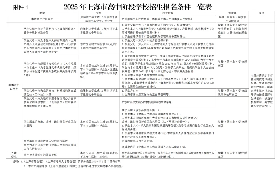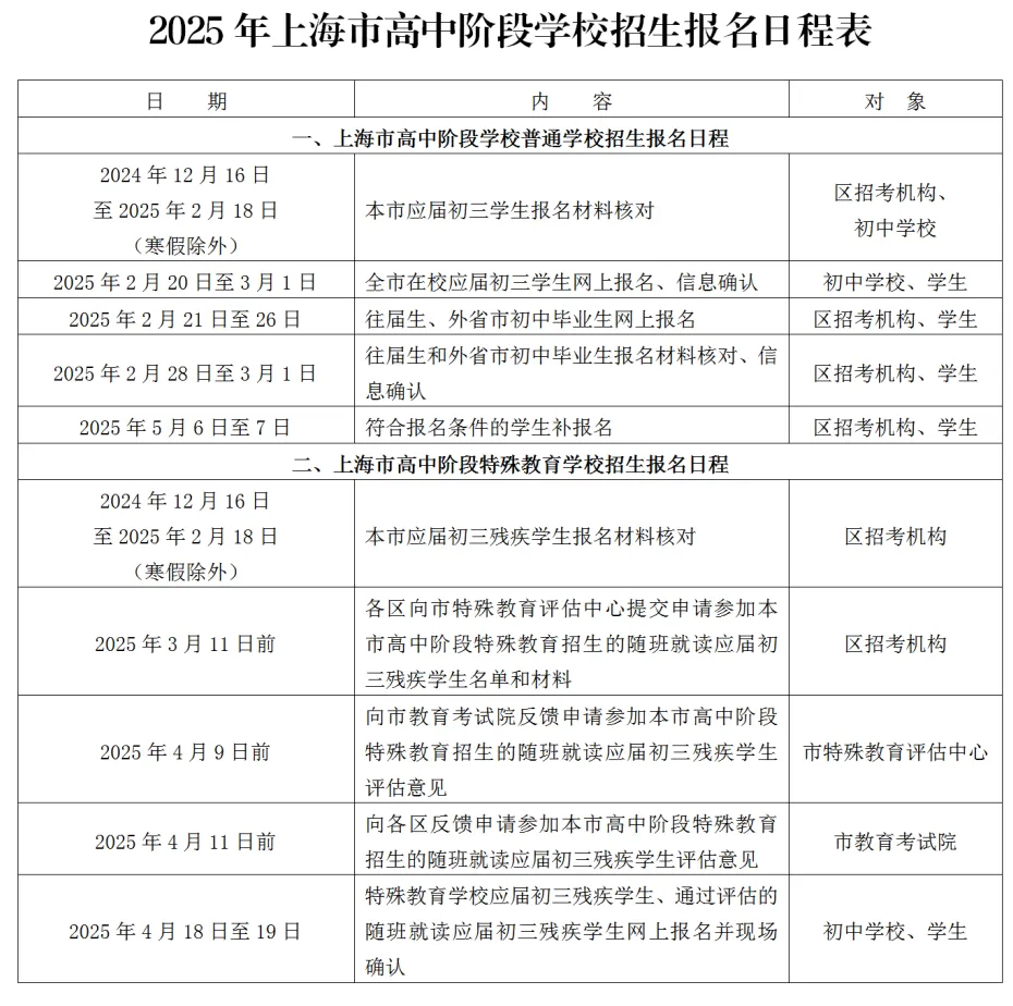 近日,上海市教委公布了《关于做好2025年本市高中阶段学校招生报名工作的通知》,具体内容一起来看↓