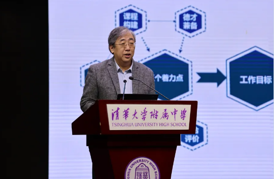 海淀区教委副主任唐建东以《坚持素养导向,构建拔尖创新人才培养新生态》为题作报告