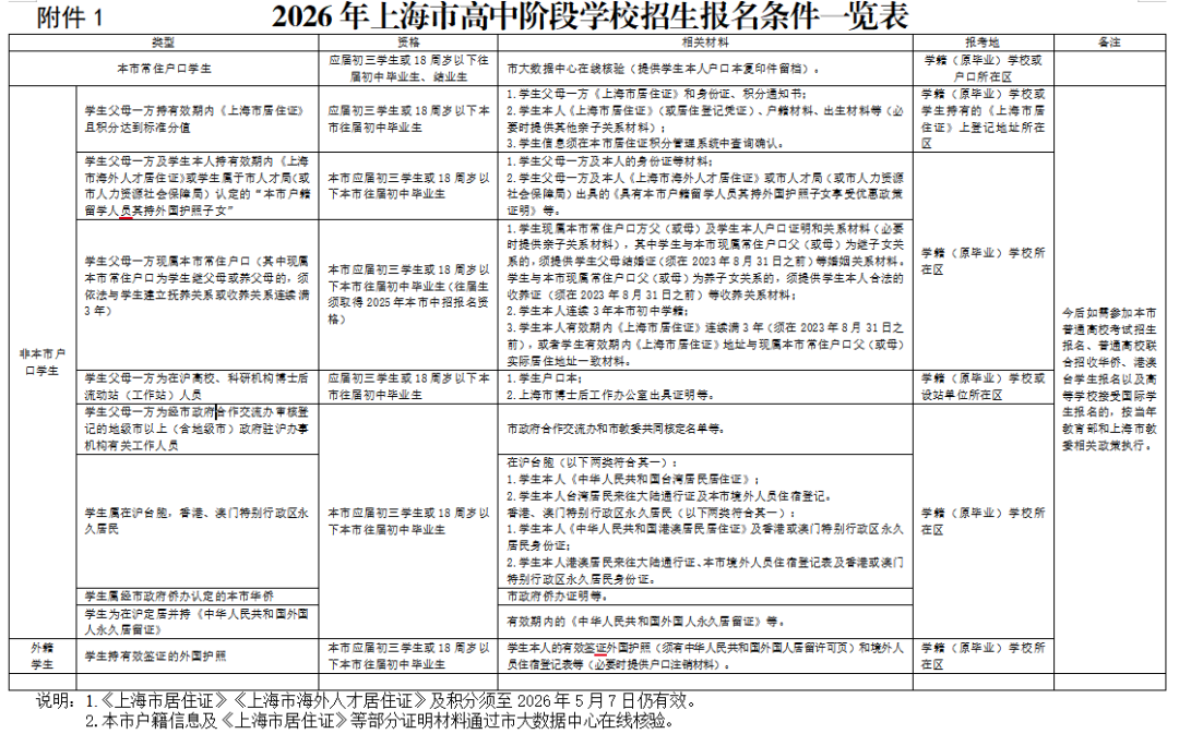 (一)符合本通知规定的报名对象,所需提供相关材料要求见附件1,其中涉及的《上海市居住证》《上海市海外人才居住证》及积分须至2026年5月7日仍有效。