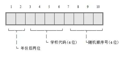 中考报名号是在基本信息采集工作结束之后,由“中招平台”为考生提供的唯一身份标识码,用于中考信息管理,报名号长度为10位,每位代表的含义如下图。
