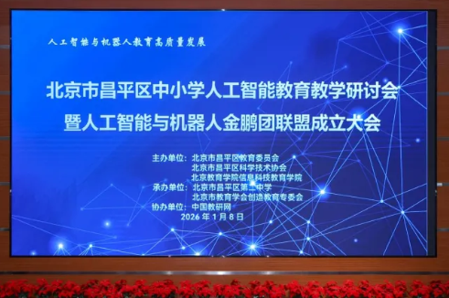 为深入贯彻国家人工智能与机器人教育战略部署,推动区域中小学科技创新教育高质量发展,充分发挥北京市高水平学生社团金鹏科技团辐射引领作用,1月8日,昌平区中小学人工智能教育教学研讨会暨人工智能与机器人金鹏团联盟成立大会在昌平二中回龙观校区成功举办。大会汇聚了来自高校、市、区教育科研单位、科协系统的领导专家以及联盟校代表,第二批全国科学教育实验区第1协同组成员单位、新疆阿勒泰地区中小学校长通过线上形式参会。