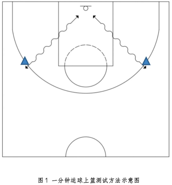 以1分钟内进篮次数记录成绩(如下图1所示),每名考生有两次考试机会,以两次测试之中最佳成绩为考试成绩。两次测试时间间隔原则上不超过3分钟。