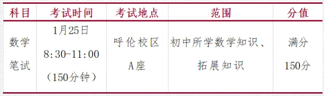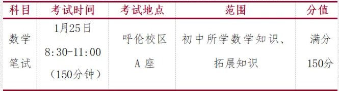 通过笔试入围复试环节的数学类考生,将于1月26日8:00在呼伦校区参加复试,详见后续呼和浩特市第二中学微信公众号的复试查询公告。