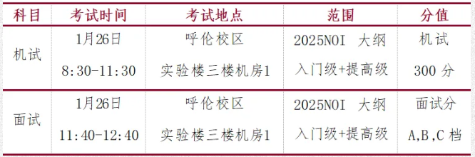 参加信息学类考生于1月25日上午参加完数学笔试考试后,于1月26日上午参加信息学机试及面试。