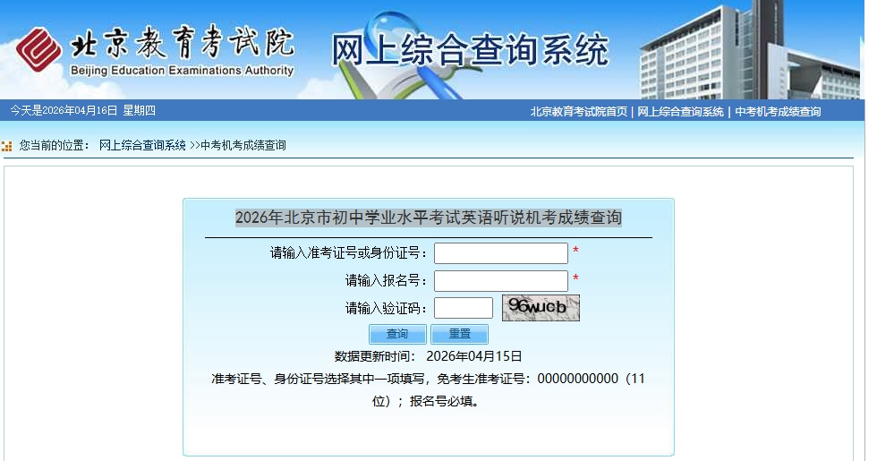 2026北京初中学业水平考试英语听说机考成绩查询
