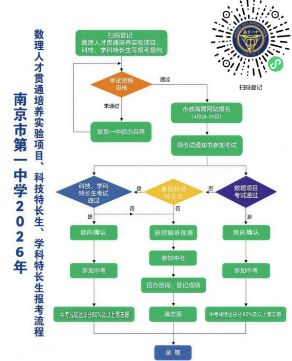 南京一中2026年数理人才贯通培养实验项目、科技特长生、学科特长生招生正式启动!今年特长生招生计划是多少?如何报考?报考流程有哪些关键步骤?一起来看重点信息!