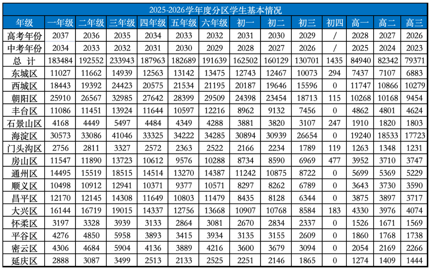 先给大家吃一颗定心丸:我们统计的总人数为19220人,与市教委公布的2025-2026学年度海淀区高一在校生人数19240人,仅差20人。误差极小,数据可信度极高。