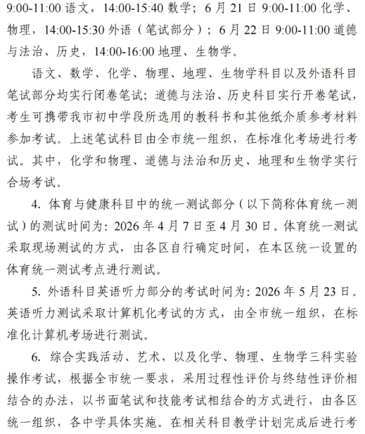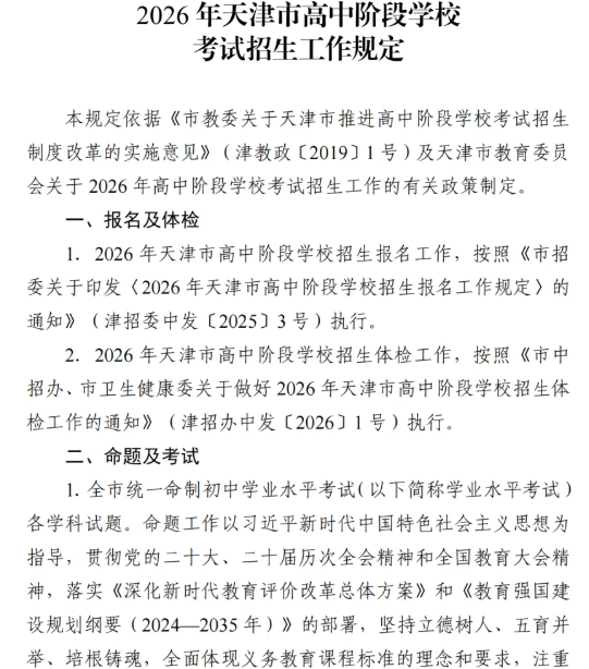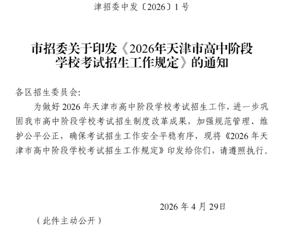 天津市招委关于印发《2026年天津市高中阶段学校考试招生工作规定》的通知公布,今年天津市中考定于6月20日至22日举行,为期三天,以下是具体时间安排内容,大家一起来看!