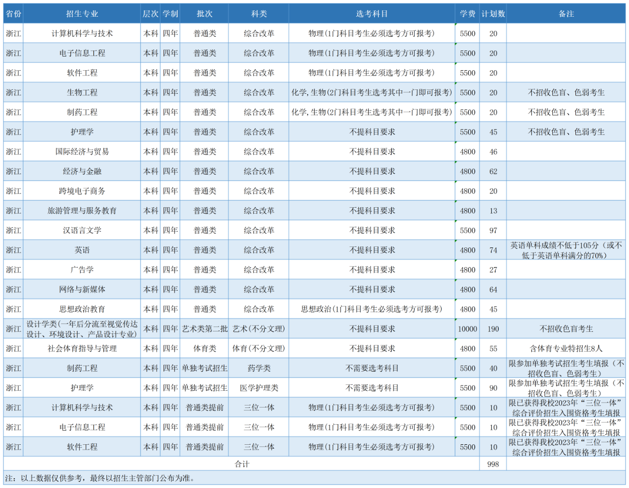 温馨提示:最终招生计划以各省级招生主管部门公布为准。请考生仔细阅读《湖州学院2023年普通高校招生章程》,了解学校专业要求及招生录取政策。