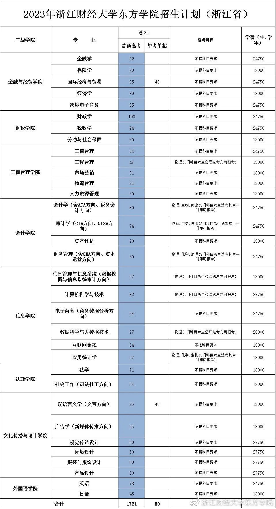 高考已经结束,各高校陆续发布了2023年招生计划,为方便大家对每个高校招生计划了解,自主选拔在线浙江新高考团队特整理了浙江财经大学东方学院2023年本科招生计划,供大家参考!