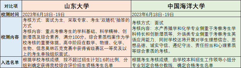 山东大学VS中国海洋大学(2023年综合评价校测内容及入选名单)