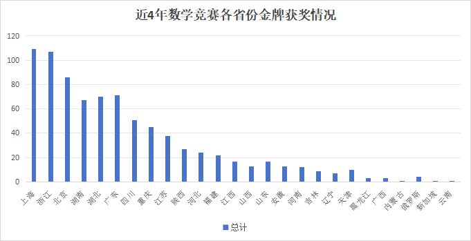 | 近4年数学竞赛各省份金牌获奖情况 | |||||